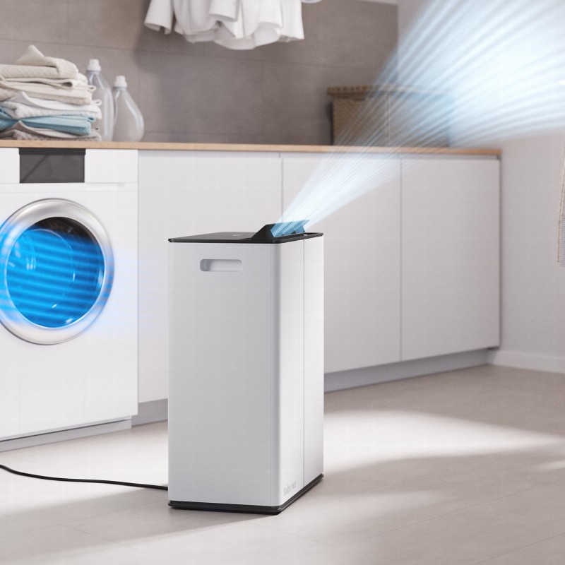 Jako urządzenie 2 w 1 o profesjonalnej mocy, Lukas Pro jednocześnie osusza i oczyszcza powietrze, tworząc przyjemny klimat w pomieszczeniu. Dzięki Wi-Fi można nim sterować bez wysiłku – w dowolnym czasie i z dowolnego miejsca. Funkcja swing, którą można aktywować osobno, optymalnie rozprowadza powietrze w pomieszczeniu. Tryb suszenia prania błyskawicznie suszy mokre ubrania. Dzięki wydajności osuszania do 50 litrów dziennie Lukas Pro idealnie nadaje się do dużych pomieszczeń. Filtr HEPA niezawodnie usuwa zanieczyszczenia, takie jak zarazki, pyłki, kurz i inne – Lukas Pro sprawdza się zatem również jako oczyszczacz powietrza i zapewnia higieniczne powietrze w pomieszczeniu. Tryb osuszania można włączać lub wyłączać w zależności od potrzeb. W trybie nocnym Lukas Pro pracuje wyjątkowo cicho i dyskretnie. Funkcje takie jak cyfrowy higrostat, timer, automatyczne wyłączanie po zapełnieniu zbiornika na wodę oraz możliwość wyboru opcji odprowadzania wody – przez zbiornik lub wąż spustowy – dopełniają funkcjonalność Lukas Pro.