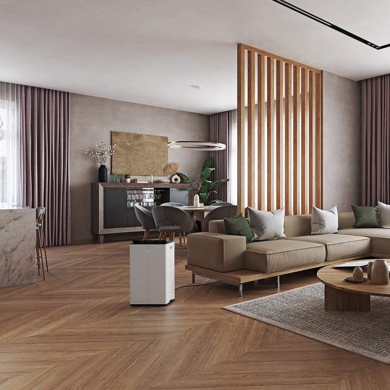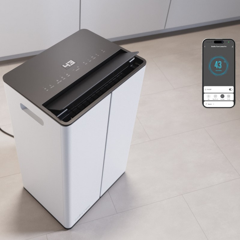 Osuszacz powietrza i oczyszczacz powietrza Lukas Pro można łatwo monitorować i sterować z dowolnego miejsca dzięki Wi-Fi. Niezależnie od tego, czy korzystasz z aplikacji, czy bezpośrednio z panelu dotykowego – idealny klimat w pomieszczeniu jest w zasięgu ręki.