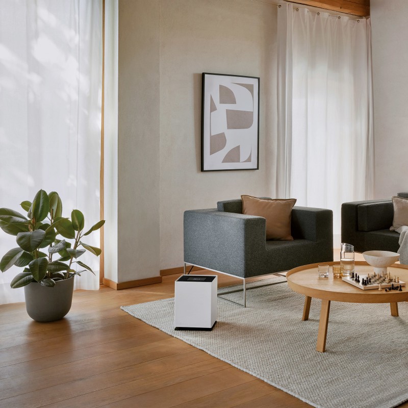 Nawilżacz Noah wykorzystuje technologię ewaporacji, dostarczając do 800 ml wody na godzinę, co zapewnia naturalne i równomierne nawilżanie powietrza w dużych i wysokich pomieszczeniach. Cztery poziomy nawilżania oraz funkcja turbo umożliwiają szybkie podniesienie wilgotności przy jednoczesnym niskim zużyciu energii. Opcjonalny zapach może być rozprowadzany w całym pomieszczeniu dzięki dozownikowi zapachów. Wilgotność, poziom wody oraz inne funkcje urządzenia można monitorować i sterować za pomocą aplikacji.
