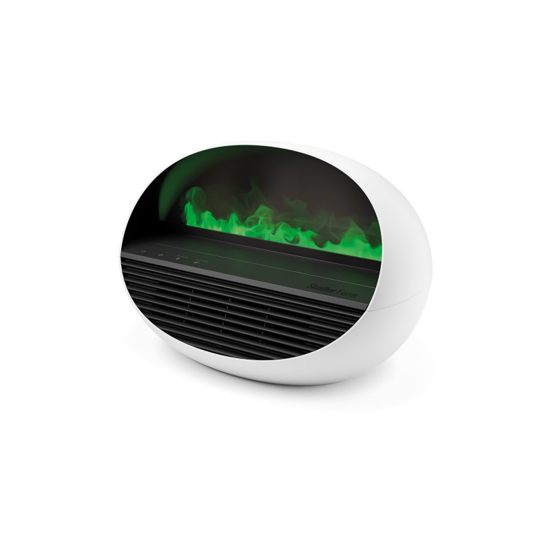 Erik przenosi atmosferę kominka do każdego pomieszczenia – imponujące połączenie termowentylatora, kominka elektrycznego i dyfuzora zapachów. Funkcje mogą być używane indywidualnie lub łącznie, aby zapewnić komfort, ciepło i zapach zgodnie z potrzebami. Podświetlana mgiełka wodna tworzy efekt ognia – chłodny, bez sadzy i całkowicie bezpieczny. Dzięki temu można poczuć atmosferę prawdziwego kominka. Dla idealnego, romantycznego doświadczenia kominkowego, Erik może opcjonalnie wypełniać powietrze zapachem olejków eterycznych.